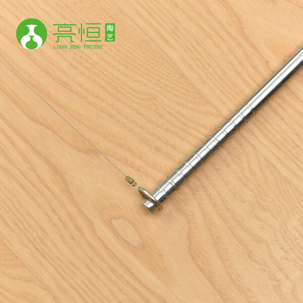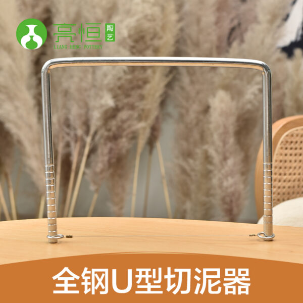 The all-steel U-shaped clay cutter is a robust tool designed for precise cutting and shaping of clay in ceramic art. Its U-shaped blade allows for clean, smooth cuts, making it ideal for trimming edges, creating curves, and shaping various forms.