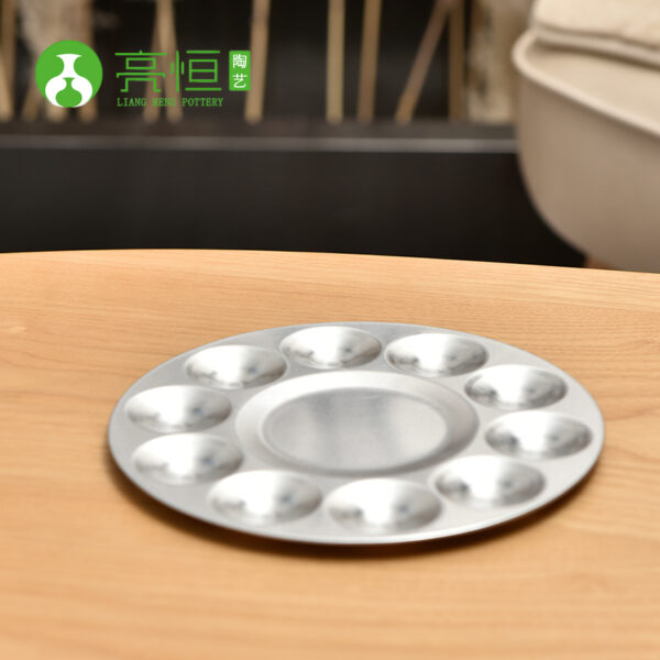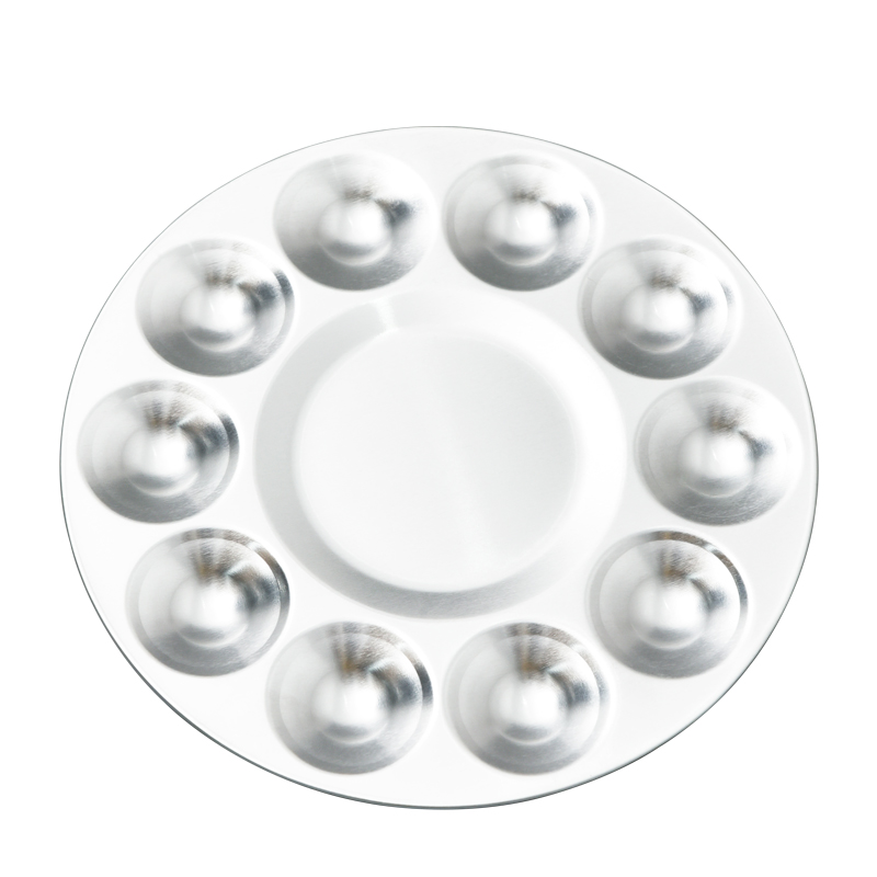 The aluminum palette is a versatile tool used by artists for mixing and holding paints. Its lightweight and durable construction make it an excellent choice for both indoor and outdoor painting. The smooth surface allows for easy mixing of colors, while the reflective quality of aluminum helps in visualizing true color tones.