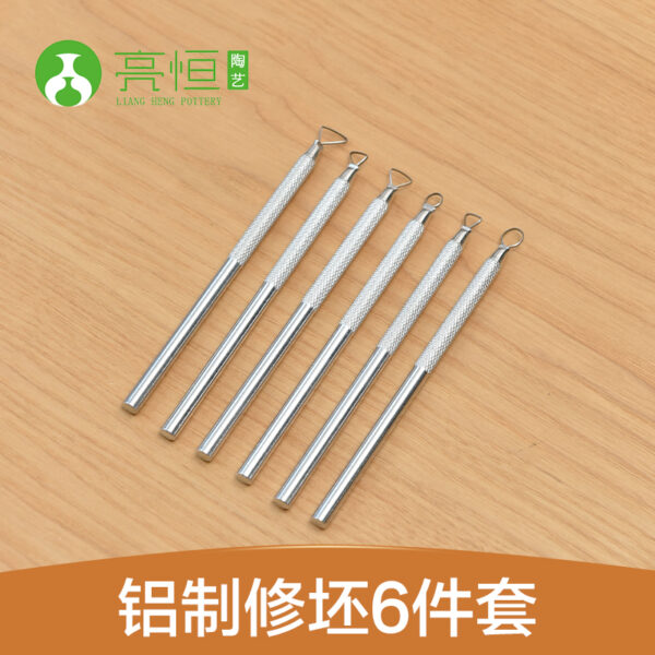 The aluminum trimming 6-piece set is a specialized collection of tools designed for potters and ceramic artists, primarily used for trimming and refining clay pieces. Made from lightweight yet durable aluminum, this set provides essential tools that facilitate precise shaping and detailing.