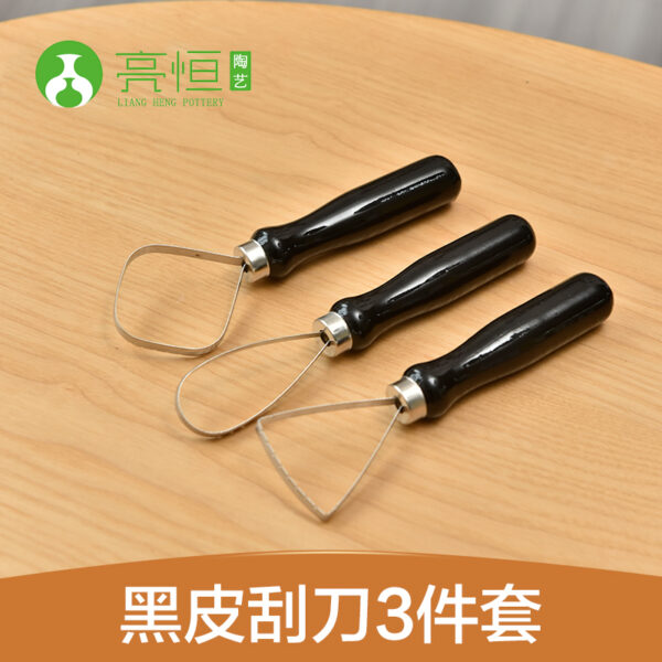The black leather scrapers three-piece set is a specialized tool collection designed for artists and craftsmen, particularly in pottery and sculpting. These scrapers are ideal for smoothing, shaping, and detailing various materials, offering precision and versatility in a range of applications.