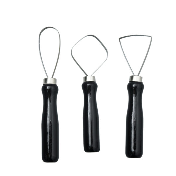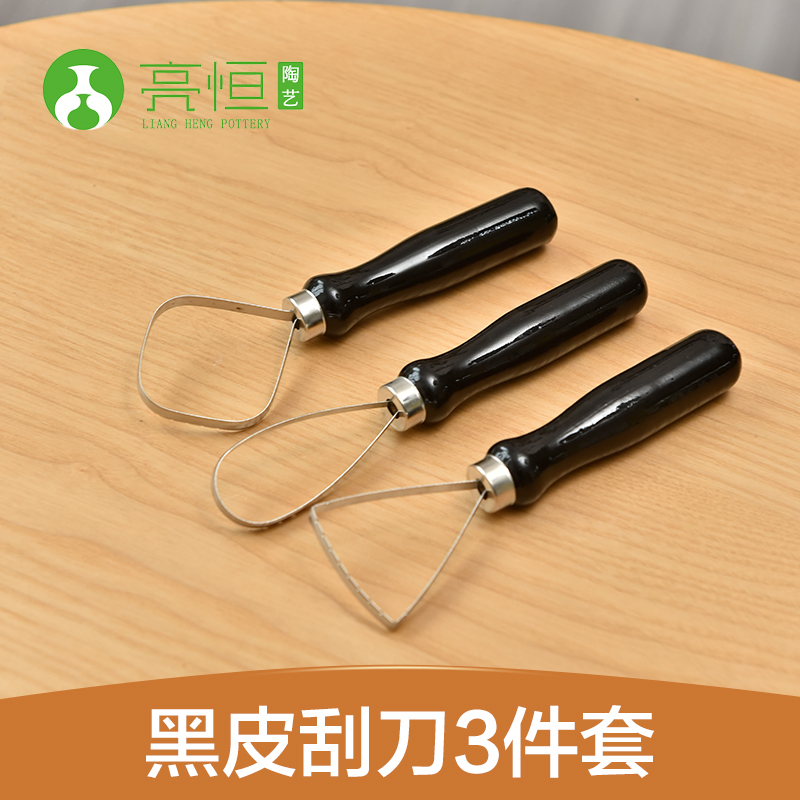 This three-piece black leather scrapers set is essential for anyone engaged in pottery or sculpting, providing the tools needed to achieve smooth, professional results in their creative projects.
