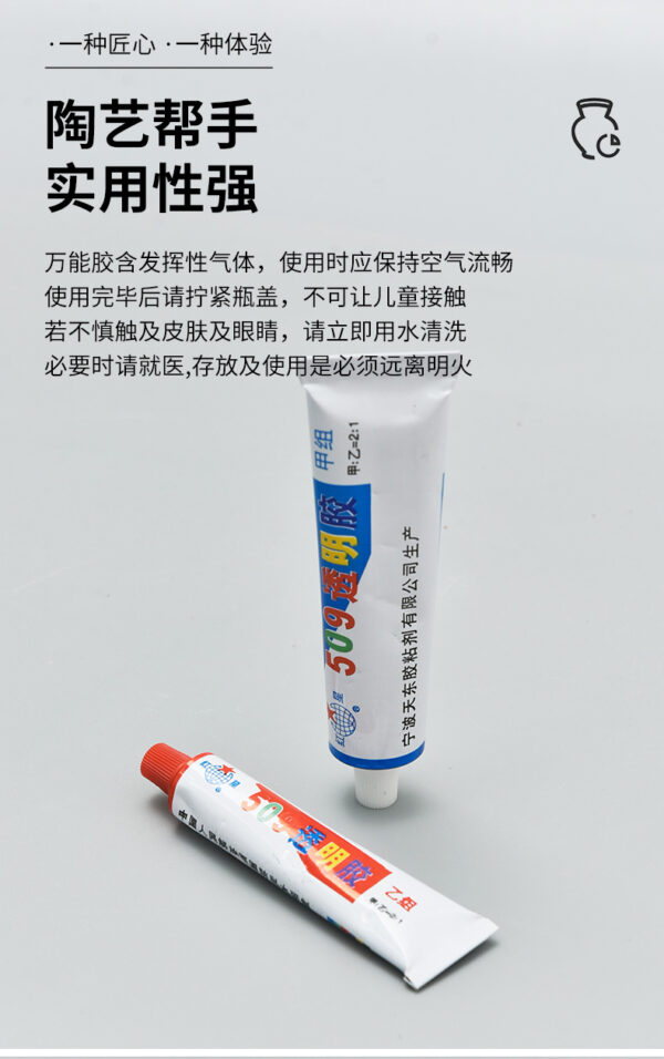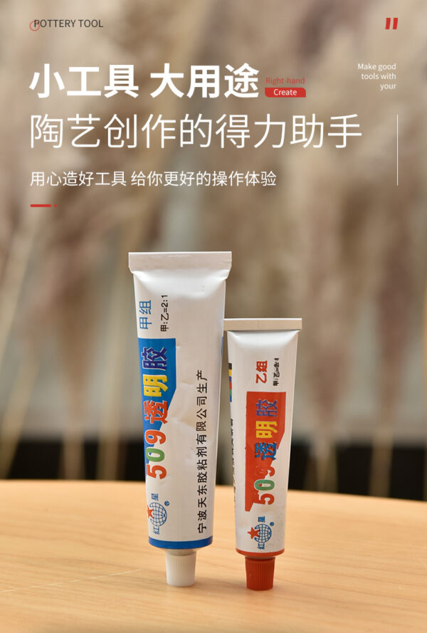 Ceramic AB glue is a two-part epoxy adhesive designed for bonding ceramics and other materials. It consists of a resin (Part A) and a hardener (Part B) that are mixed before application. This glue forms a strong and durable bond, making it ideal for repairing broken ceramic items or joining different pieces. It is often water-resistant and can withstand high temperatures, making it suitable for both decorative and functional ceramics. With a relatively quick curing time, ceramic AB glue is an essential tool for potters and ceramic artists, ensuring reliable adhesion in various projects.