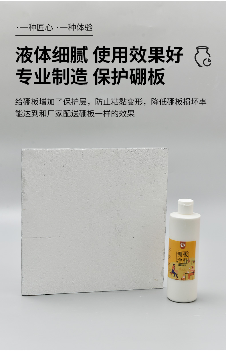 4. **Surface Finish**: The coating can provide a smooth, finished appearance, enhancing the aesthetic appeal of the ceramic boron board while also making it easier to clean and maintain.
