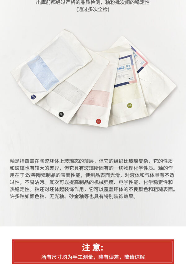 – **Functional Properties**: Some glazes have antibacterial, waterproof, and other special features.