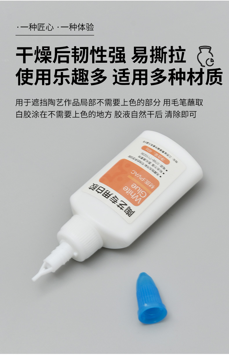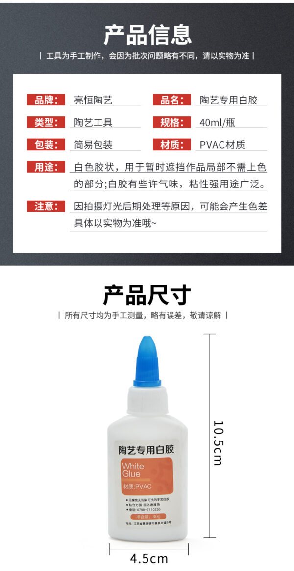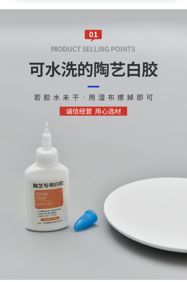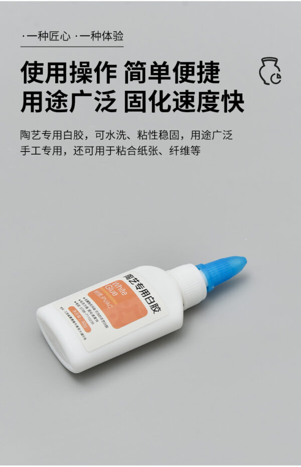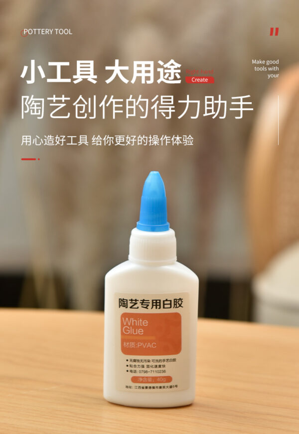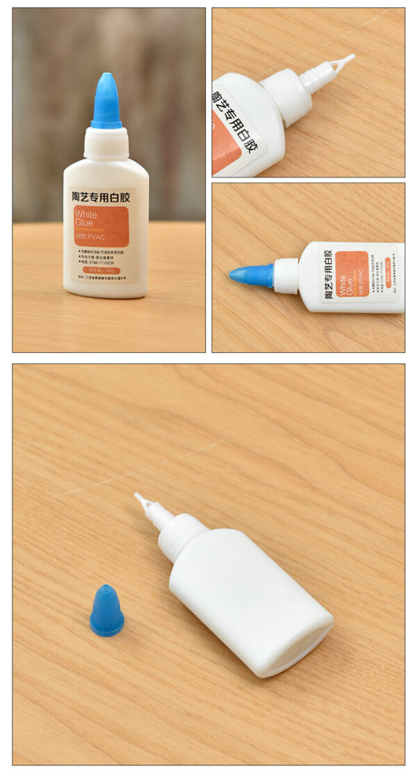 Ceramic-specific white glue is a specialized adhesive designed for bonding ceramic pieces in pottery and ceramic projects. It creates a strong, durable bond that is often water-resistant once cured, making it suitable for both decorative and functional items. This glue typically dries quickly, is non-toxic, and dries clear for aesthetic purposes. Ideal for tasks such as repairing chipped pottery or joining ceramic elements, ceramic-specific white glue is an essential tool for potters and ceramic artists, ensuring reliable adhesion and ease of use in various projects.