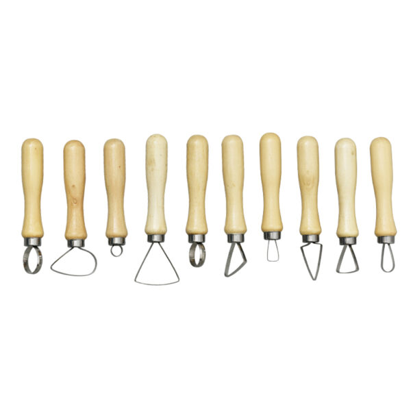 The circular trimming 10-piece set is a specialized collection of tools designed for potters and ceramic artists, particularly for trimming and refining the shapes of thrown or molded clay pieces. This set provides a variety of tools that are essential for achieving professional results in pottery.