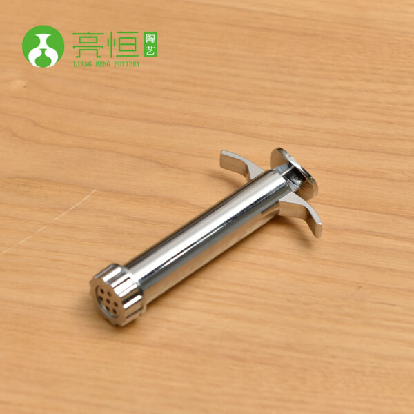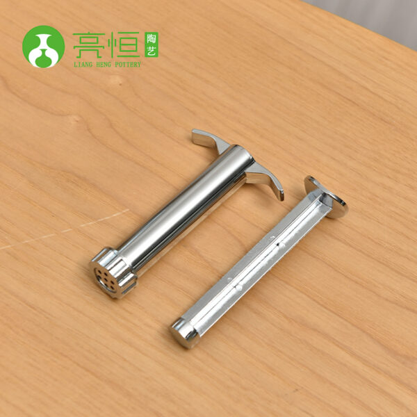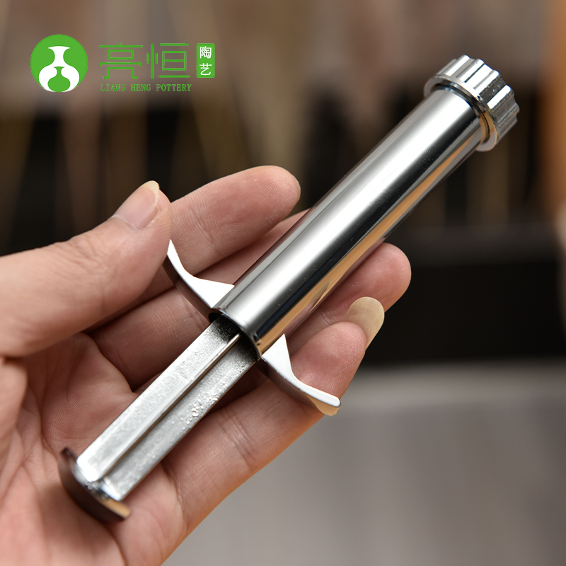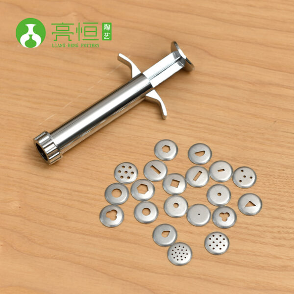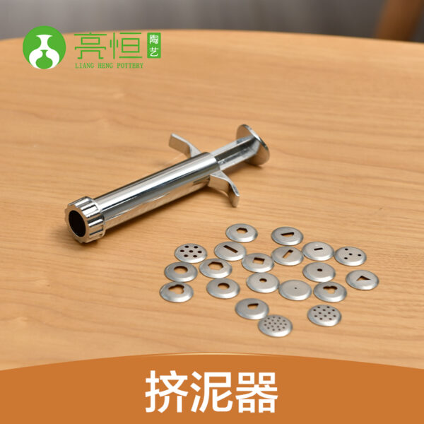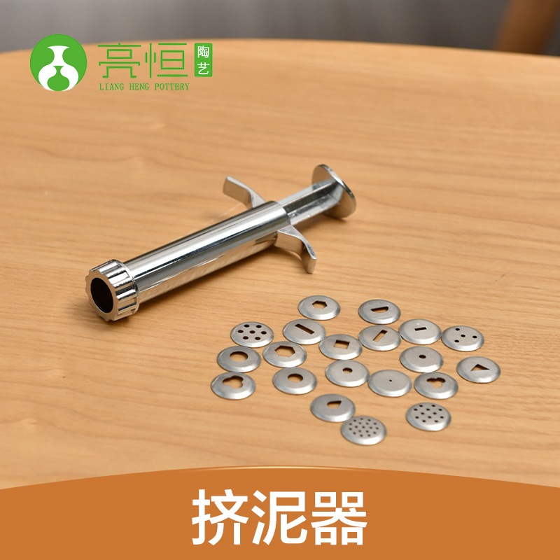 A clay extruder is a tool used in pottery to push clay through a tube, forcing it out through a shaped die to create long, uniform forms like coils, tubes, or intricate patterns. Extruders are versatile and come in various sizes, from handheld models to larger wall-mounted versions. They allow artists to produce consistent shapes quickly, making them useful for handles, decorative elements, or repetitive designs in ceramics.