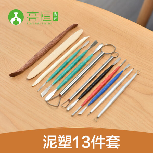 The clay sculpture thirteen-piece set is a comprehensive collection of tools specifically designed for sculpting, modeling, and detailing various clay projects. This set is perfect for artists of all skill levels, from beginners to professionals.