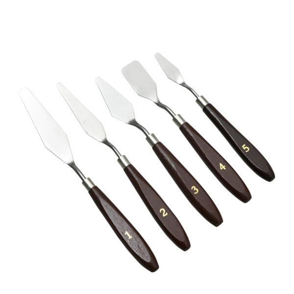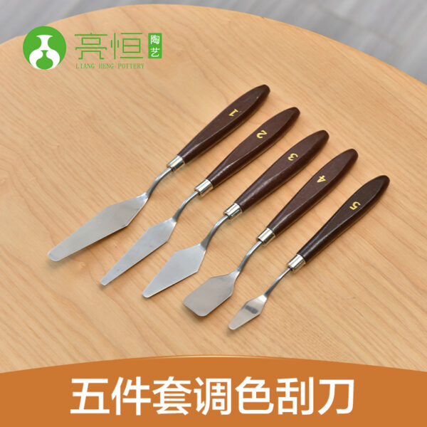 The five-piece color mixing spatula set is a versatile collection of tools designed for artists, painters, and crafters who need to mix and apply various colors and mediums. This set is particularly useful in painting, pottery, and other artistic applications, allowing for precise color mixing and application.