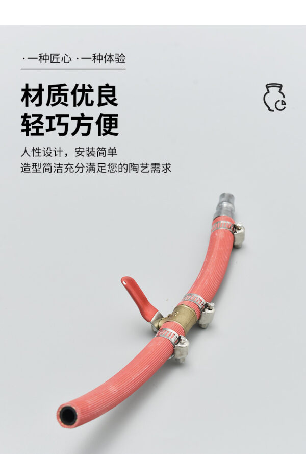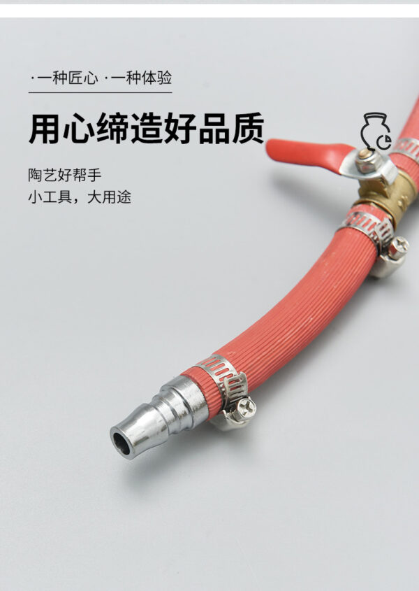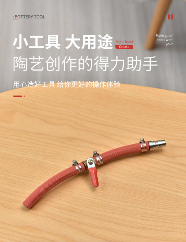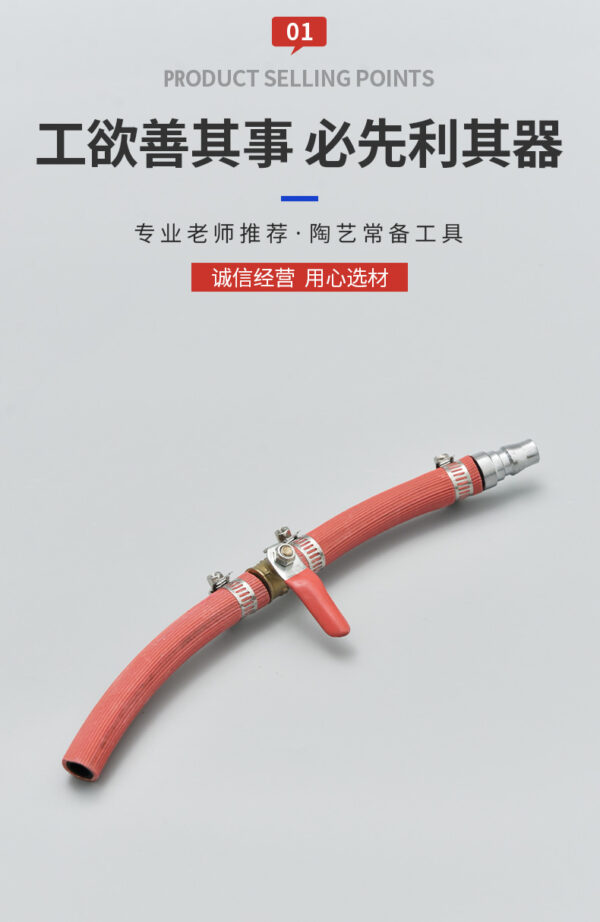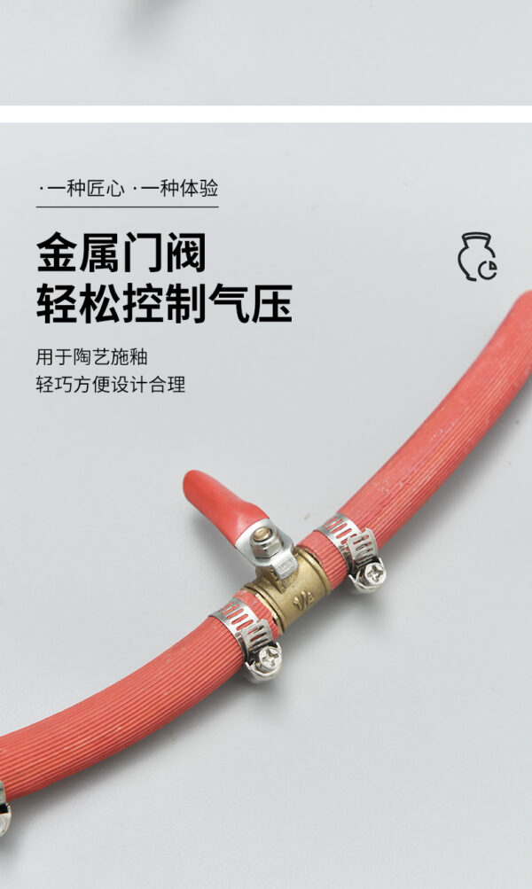 Overall, the glaze blowing pot pressure control connector hose is essential for achieving high-quality glazing results, providing potters with the control needed to create beautiful and intricate designs on their ceramic pieces.