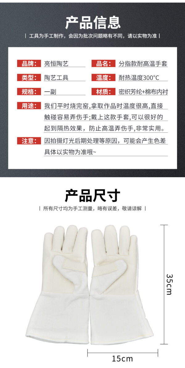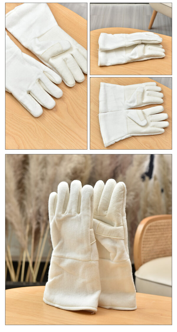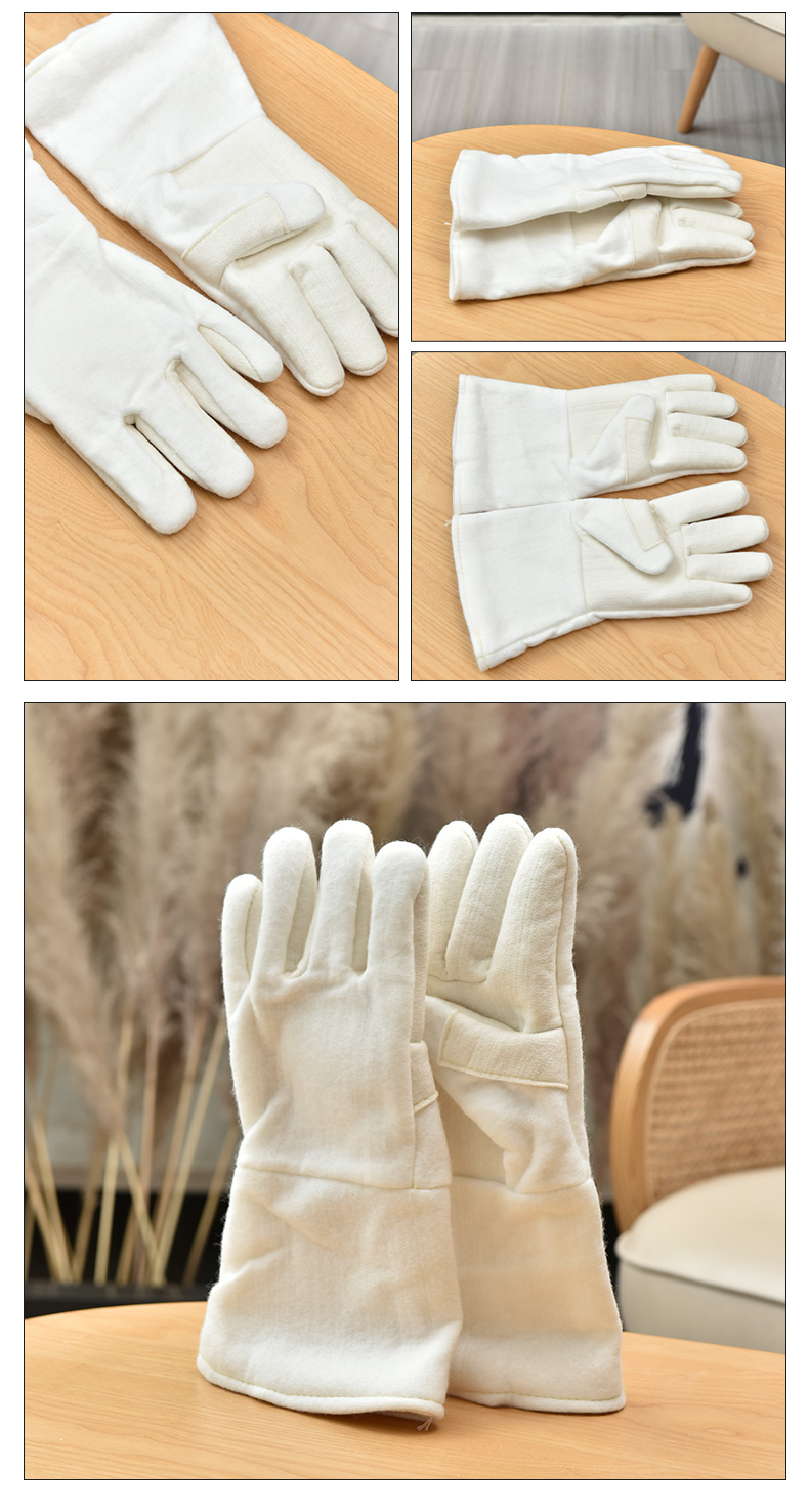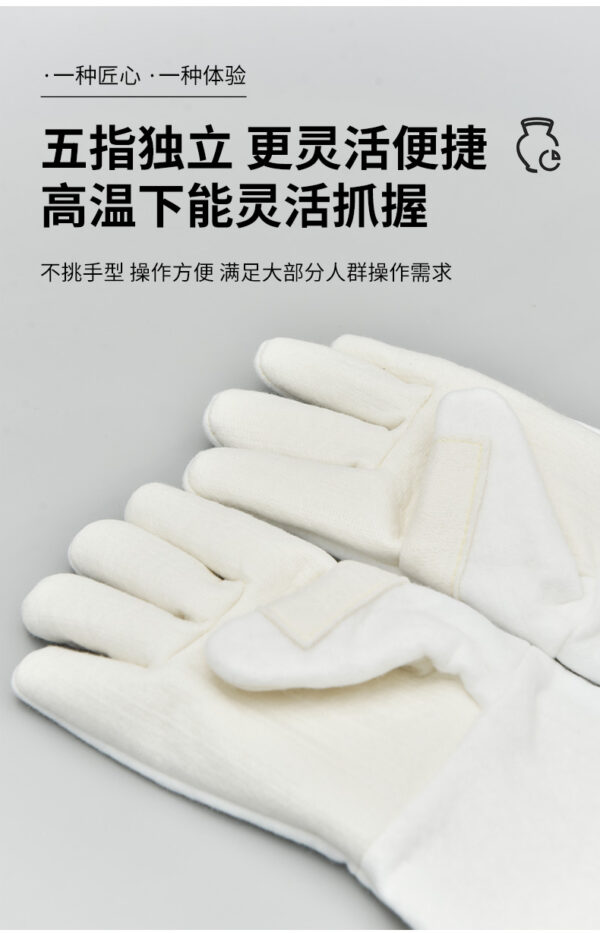 High-temperature five-finger gloves are designed to protect hands from extreme heat while allowing for dexterity and grip. Made from heat-resistant materials, they are ideal for use in kitchens, bakeries, and ceramic studios. The individual finger design enhances maneuverability, making it easier to handle hot items and perform intricate tasks. These gloves often feature padded linings for comfort, durable construction for longevity, and non-slip grips for secure handling. Versatile and practical, high-temperature five-finger gloves are essential for anyone working in environments where heat protection is necessary.