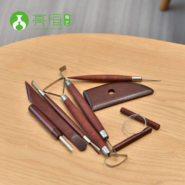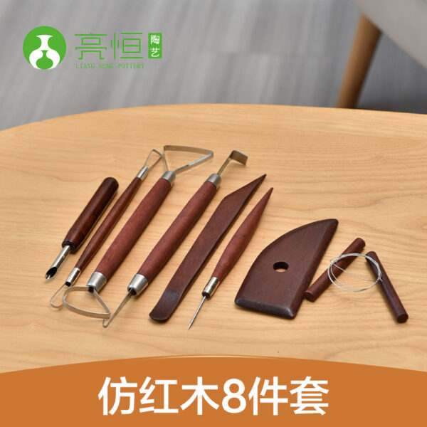 The imitation rosewood 8-piece set is a curated collection of tools designed for artists and craftsmen, particularly those involved in pottery, woodworking, and sculpting. This set combines functionality with an aesthetically pleasing design that mimics the look of rosewood, making it a popular choice among artisans.