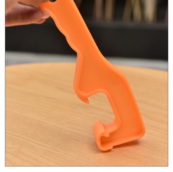 A lid opener is a handy tool designed to assist in removing or opening various types of lids and caps, such as those found on jars, bottles, and containers. It typically features a grip handle and a mechanism that provides leverage or enhances grip, making it easier to open tight or sealed lids without straining the hands. Lid openers are especially useful for individuals with limited hand strength or dexterity. They come in various designs and sizes, making them suitable for different types of lids. Overall, a lid opener is a practical and ergonomic tool that simplifies the task of opening containers in the kitchen and beyond.