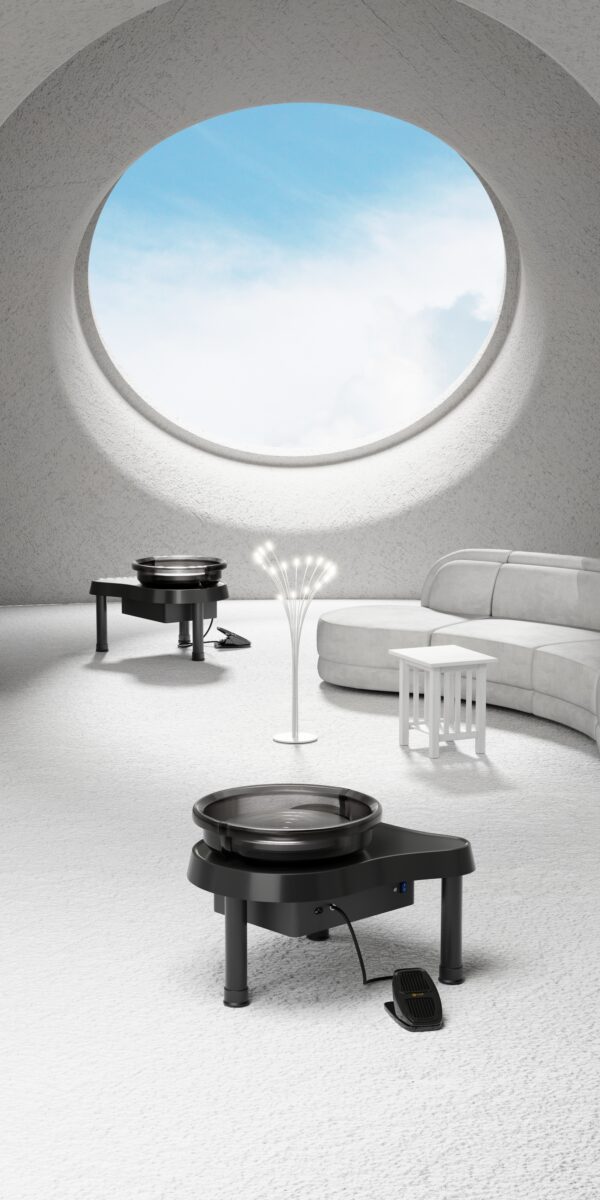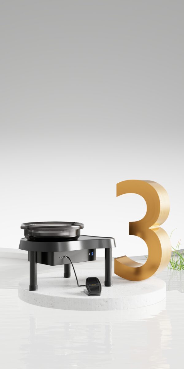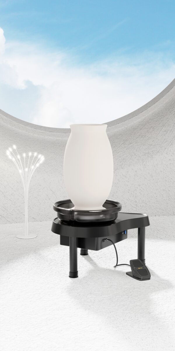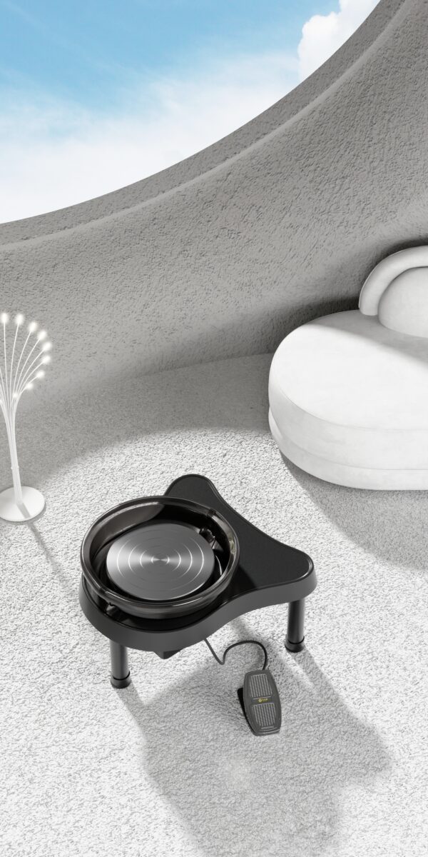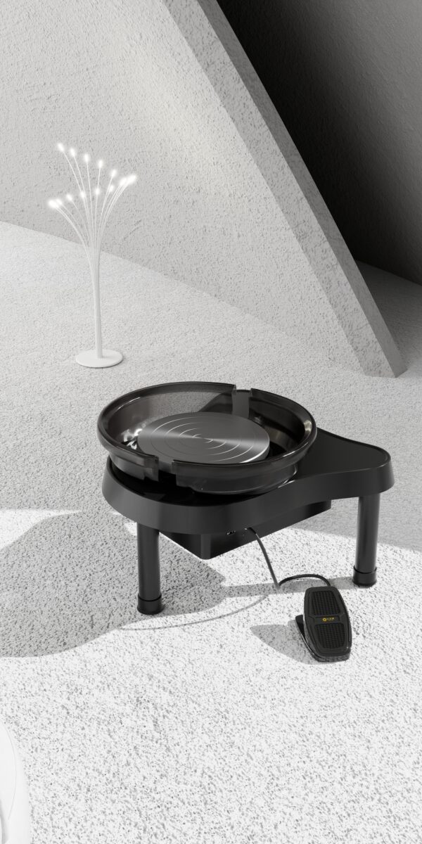 Craftsmanship: Designed by an internationally well – known design brand company. It has a triangular support, and the panel frame is made by one – time die – casting of metal, making the overall structure integrated, ensuring that the overall structure is solid and durable and runs more smoothly. The panel surface is finely sanded to present a matte high – quality texture, which does not collect dust and is easy to clean. The feet of the potter’s wheel adopt a three – legged support, which effectively reduces the swinging of the potter’s wheel caused by an unstable ground.