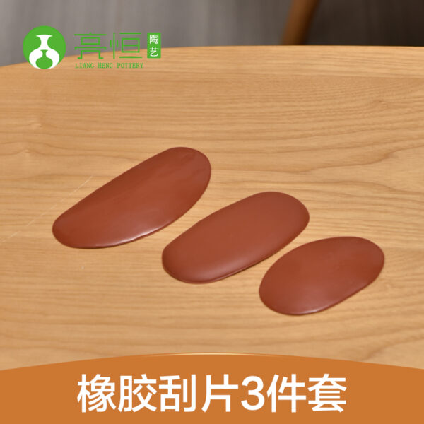 The rubber scraper set of 3 is a versatile collection of tools designed for smoothing and finishing various surfaces in ceramic art and crafting. Each scraper features a different shape and size, allowing artists to achieve a range of effects, from detailed smoothing to broader surface finishing.