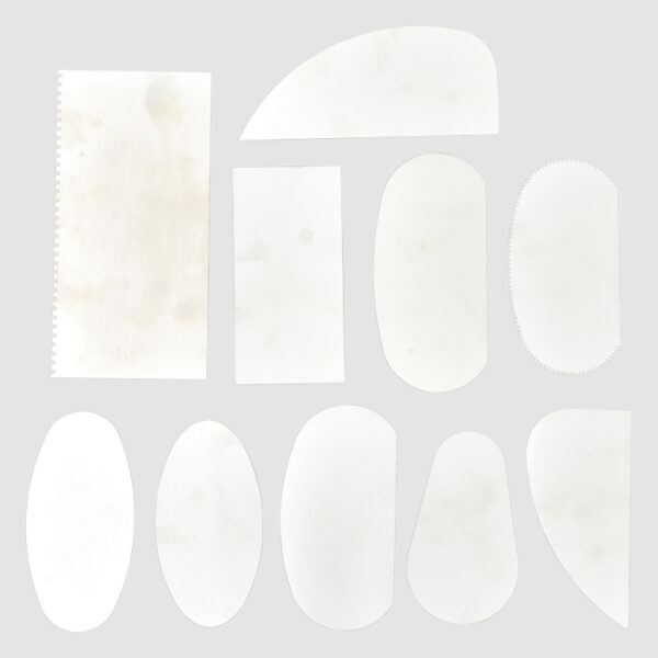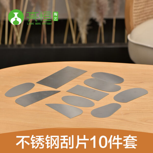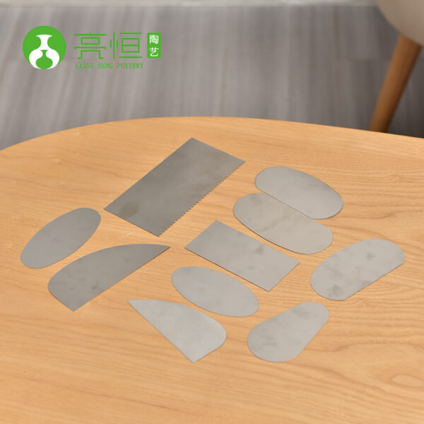 The stainless steel scraper set of 10 is a versatile collection of tools designed for precise shaping, smoothing, and finishing in ceramic art and other crafting applications. Each scraper features a different shape and edge, making it suitable for a variety of tasks, from detailed carving to broader surface smoothing.