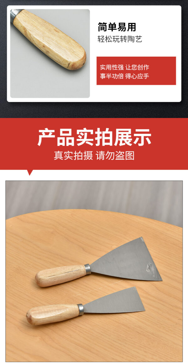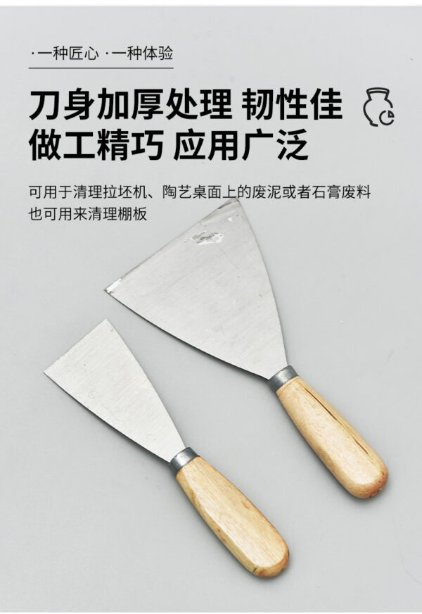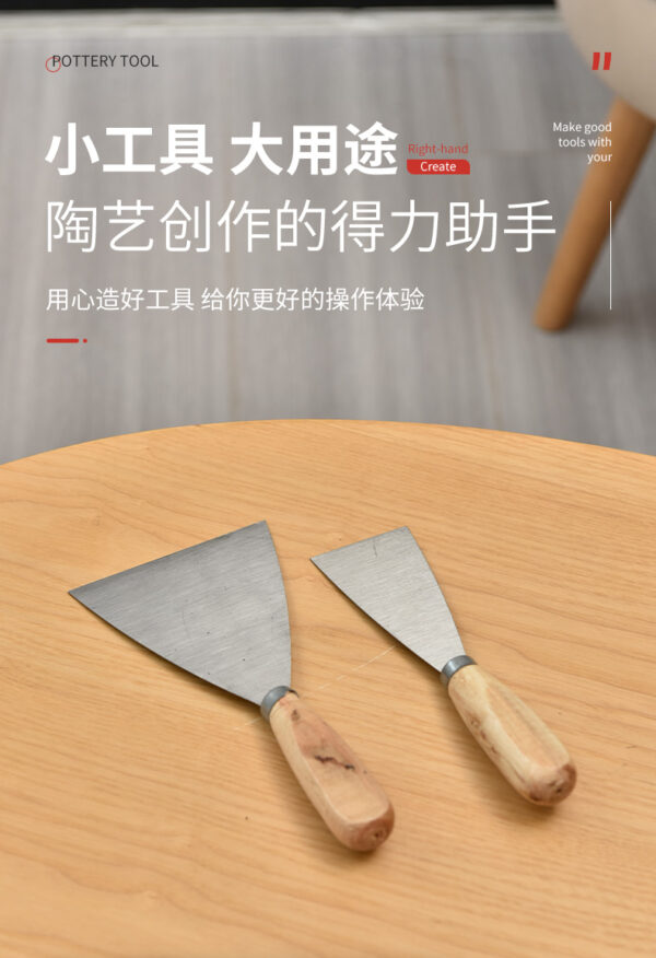 A ceramic stainless steel spatula is a durable and versatile tool used in pottery and ceramics. Made from high-quality stainless steel, it is resistant to rust and corrosion, ensuring long-lasting use. The smooth surface allows for easy manipulation and shaping of clay, making it ideal for tasks like trimming, smoothing, and applying glazes. Its lightweight design and ergonomic handle provide comfort during extended use, while the easy-to-clean surface helps maintain hygiene. Overall, this spatula is essential for potters, offering precision and efficiency in creating intricate ceramic pieces.