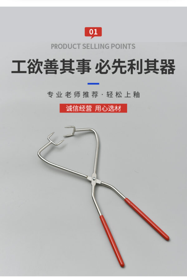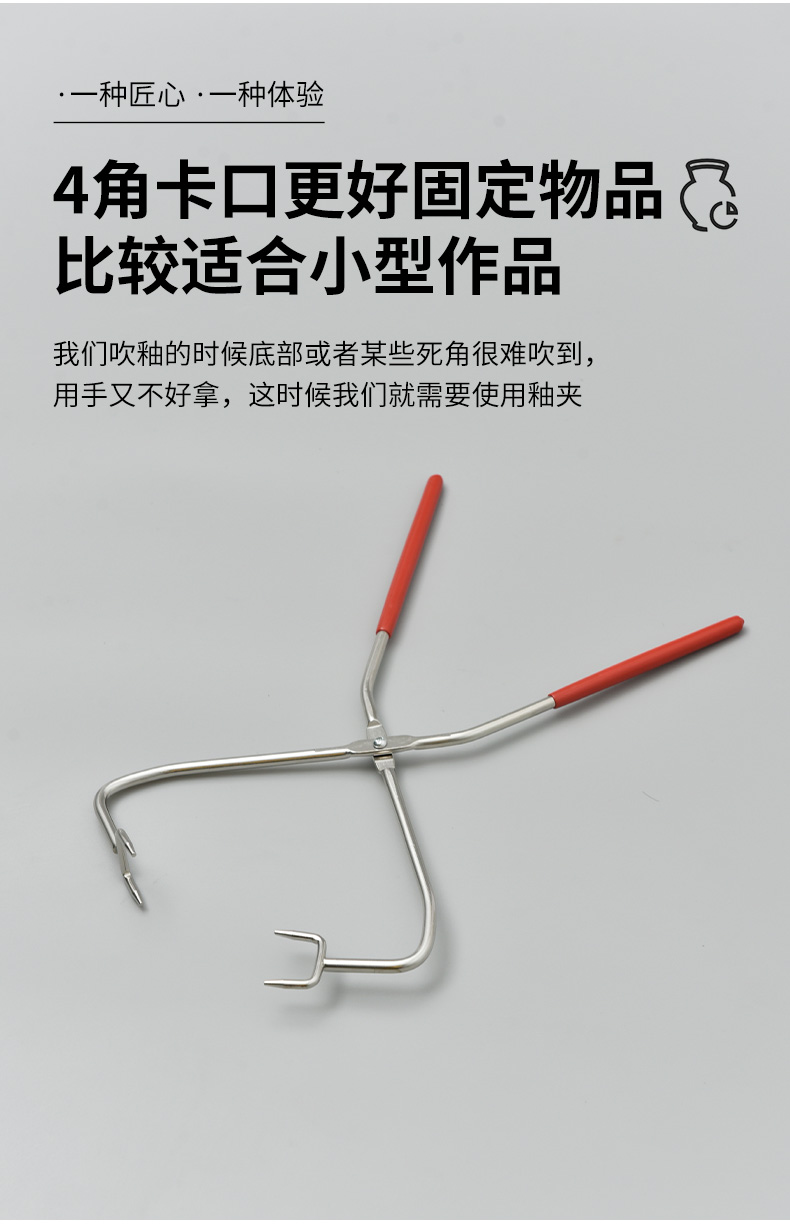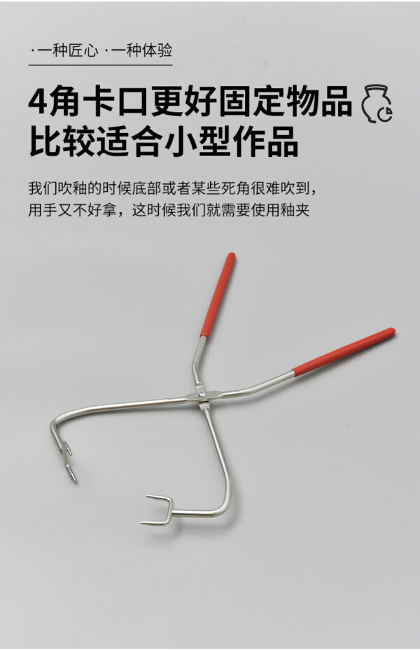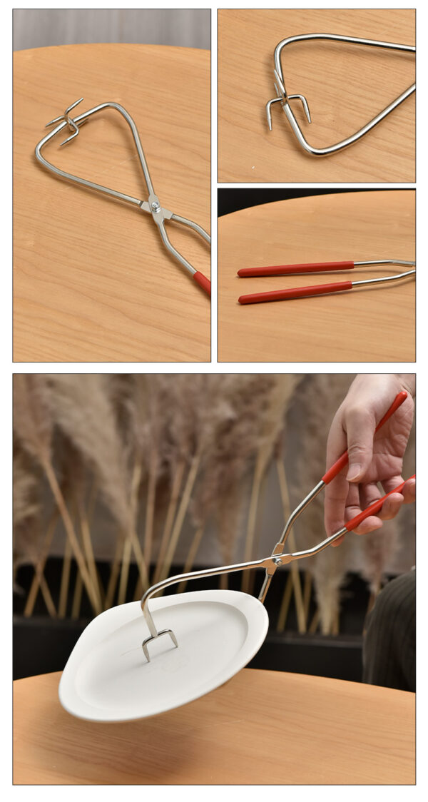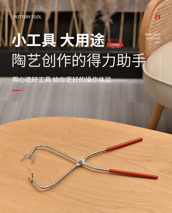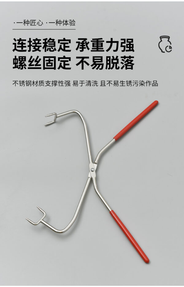 Straight handle four-head glaze tongs are specialized tools used in ceramics for applying and handling glaze on pottery pieces. With four heads, they provide multiple points of contact for better grip and stability. The straight handle allows for comfortable leverage, making it easier to manipulate heavier or awkwardly shaped items. Made from heat-resistant materials, these tongs are suitable for high-temperature environments. They enable precise application of glaze, ensuring an even coating on intricate areas. Durable and designed for regular use, these tongs are essential for potters to enhance the quality of their work during the glazing process.