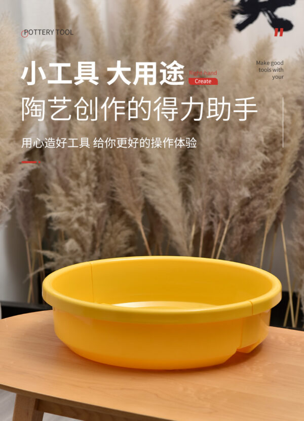 2. **Design**: Typically, the basin is designed to fit around or beneath the throwing wheel, providing easy access to water without taking up extra space in the workspace.