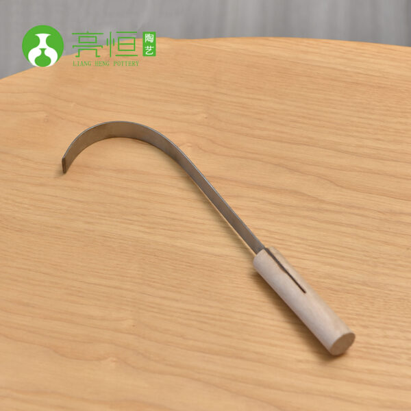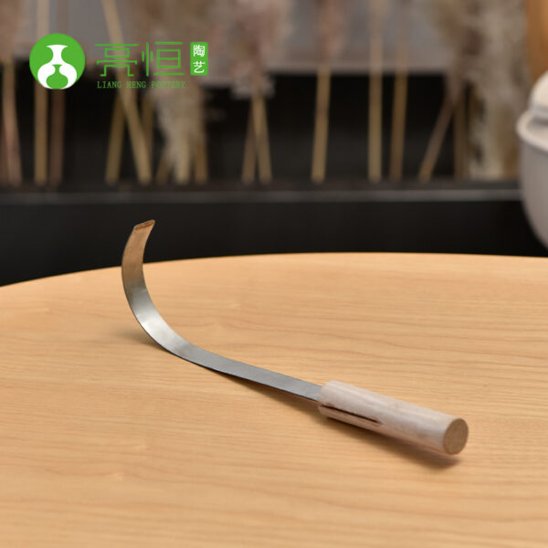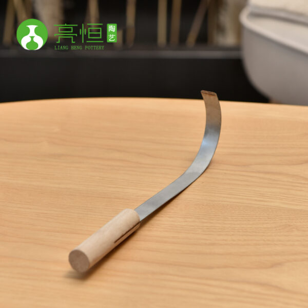 1. **Sharp Blade**: The jump knife features a sharp, curved blade that allows for easy trimming and shaping of clay. The design enables clean cuts and smooth edges, making it ideal for both trimming excess clay and refining the overall shape of the piece.